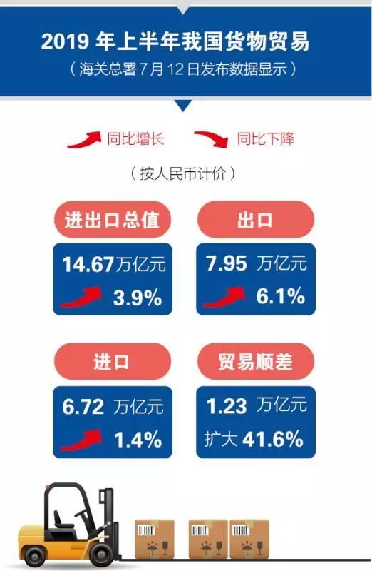 二是“六稳”政策效应持续显现,为外贸增长提供了有效动能。近年来,我国相继实施了简政放权、减税降费以及稳外贸、稳外资等一系列政策措施,尤其是去年下半年出台的“六稳”措施,今年以来又实行了大规模的减税降费措施,这都明显提振了市场、企业的预期和信心。上半年,我国外贸企业数量继续增长,有进出口实绩的企业达到了42.1万家,同比增长了5.6%。与此同时,随着“放管服”改革的深入推进,我国营商环境和贸易便利化水平也在稳步提升。上述一系列政策措施的效果逐步显现,为外贸稳增长提供了有效动能。