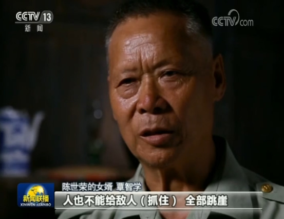 眼看着敌军赶着老百姓一点点靠近,红军战士无法把枪口对着他们继续战斗。面对步步紧逼,陈世荣和战友们退到了山坡的尽头,那是一处二十多米高的断崖。退无可退,但与敌人拼命又会伤及百姓,怎么办?