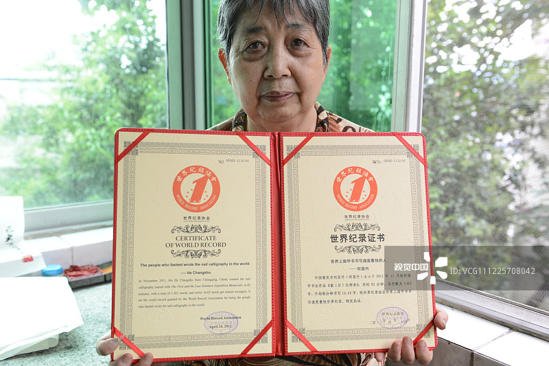 时刻新闻 —分享— 2019年7月16日,重庆市云阳县双江街道大雁路,74岁的何昌竹婆婆在练习指甲书法。74岁的何昌竹婆婆展示作品。74岁的何昌竹婆婆在练习指甲书法。74岁的何昌竹婆婆展示作品。74岁的何昌竹婆婆展示获奖证书。 来源:视觉中国 编辑:冯竞萱