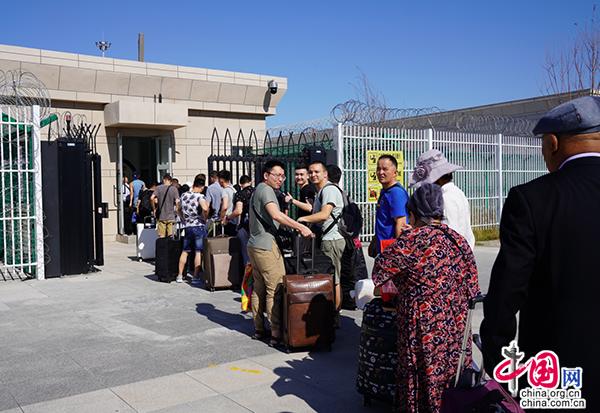 2019年6月28日,在霍尔果斯口岸,客商排队等待过境回国。中国网记者 董小迪 摄