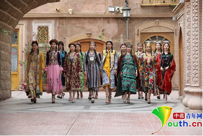 参加第59届国际小姐中国大赛新疆赛区总决赛的佳丽们穿上麦吾兰设计的衣服进行了街拍。资料图