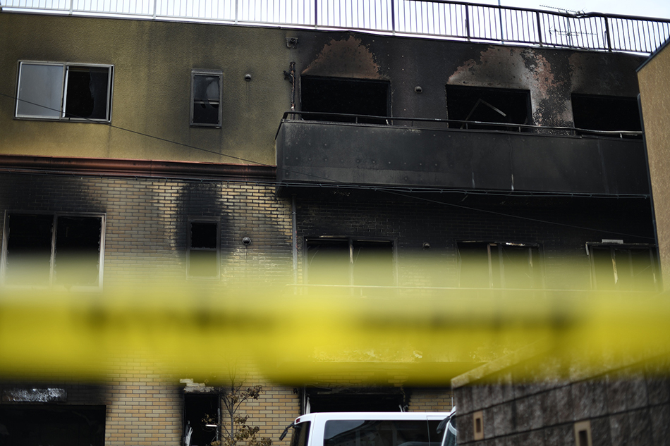 当地时间2019年7月19日,日本京都,日本动画制作公司“京都动画”火灾现场。视觉中国 图