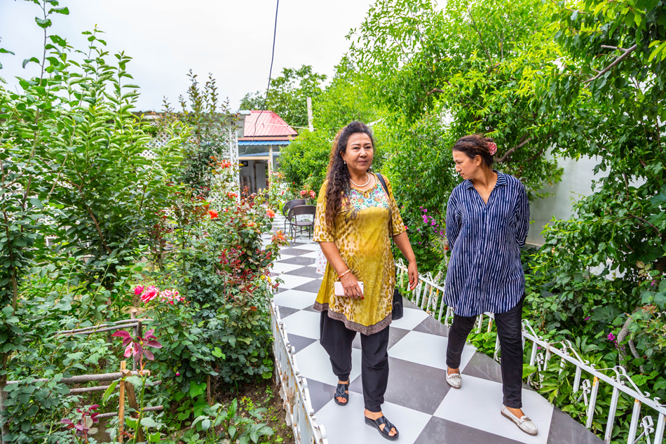 吾尼且木·艾山的儿媳米合日古丽·司马义厨艺好,她做的大盘鸡最受游客欢迎,生意好时一天要做3-4盘。米合日古丽·司马义表示,刚开始,他们也心存疑虑,没有经验怕做不好,在村干部、驻村人员的指导、鼓励下才敢尝试。如今,他们家接待游客一年能有3万多元收入,这比过去种地翻了一倍。
