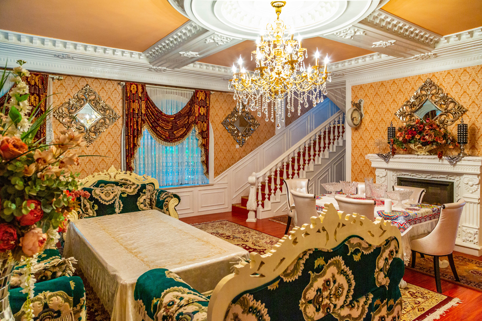 55岁艾合买提·达尼是村内的富人,长年在外经营餐饮生意。他也不甘落后,回村打造了出占地8亩的院落,前后共投入500多万元。他家的风情园是“豪华版”,有欧式装修风格的别墅,有多个可吃饭、休闲的大包间,房屋之间的空地,点缀的尽是可供采摘的果树。