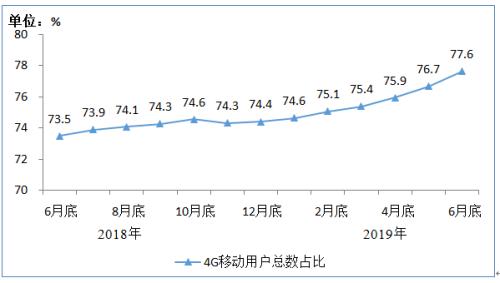 图2 2018年6月底-2019年6月底4G用户总数占比情况