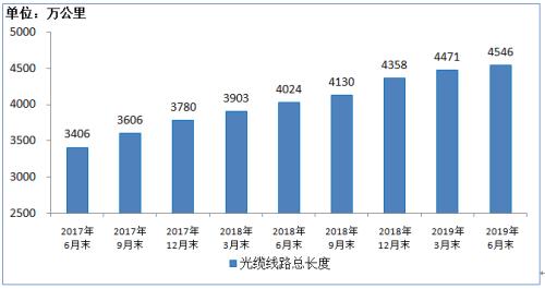光缆线路长度保持两位数增长。上半年,全国新建光缆线路187万公里,光缆线路总长度达到4546万公里,同比增长13%,保持较快增长态势。接入网光缆、本地网中继光缆和长途光缆线路所占比重分别为63%、34.5%和2.5%。