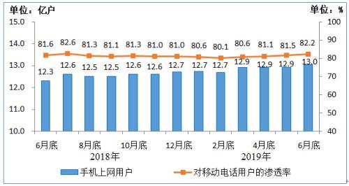 图4 2018年6月底-2019年6月底手机上网用户情况