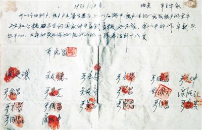 1978年,安徽省凤阳县小岗生产队18户农民按下鲜红手印,率先实行大包干生产责任制。