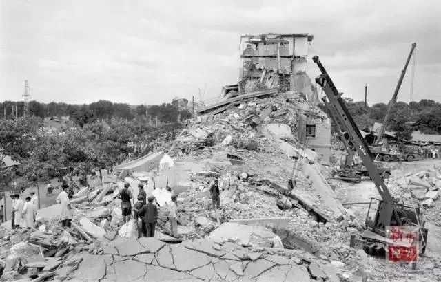 这是1976年7月28日大地震发生后,人们在清理废墟。新华社记者 官天一 摄