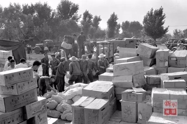 唐山大地震发生当天,一大批抗震救灾物资从上海运抵唐山机场。新华社记者 韩晓华 摄