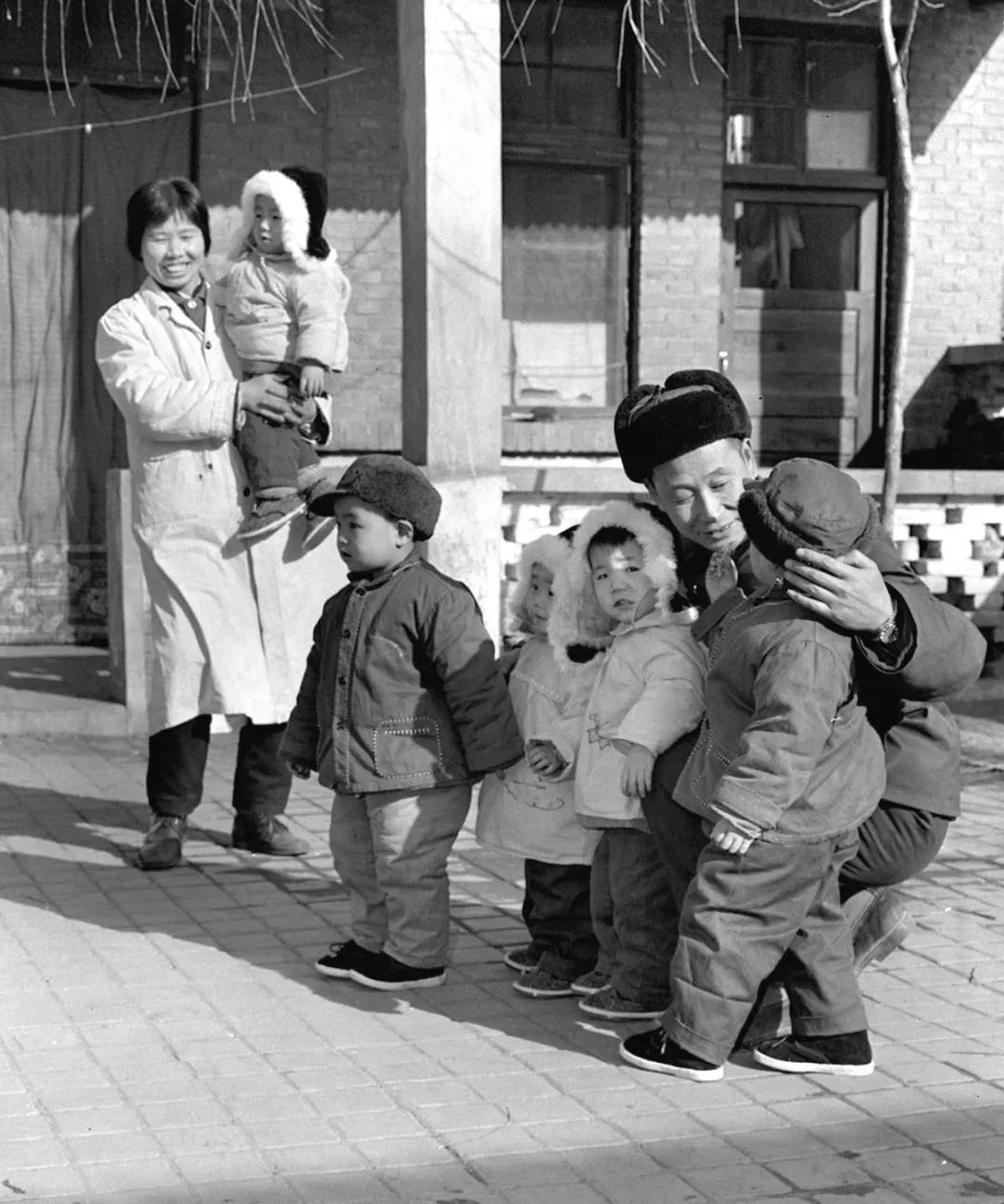 生活在唐山市育红学校的孤儿享受着大家庭的温暖。这是老师王子君星期日和孩子们在一起。新华社记者赵连升摄 (1986年7月5日发)
