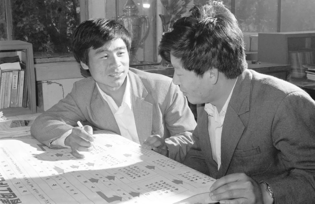 唐山大地震孤儿刘志刚(左)自邢台育红学校高中毕业后,分配到唐山建筑陶瓷厂工作。1982年,他加入了中国共产党。新华社记者 赵连升 摄 (1986年7月5日发)