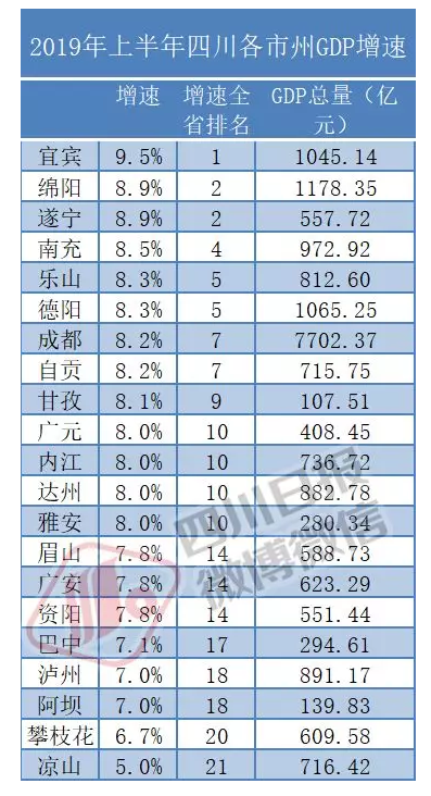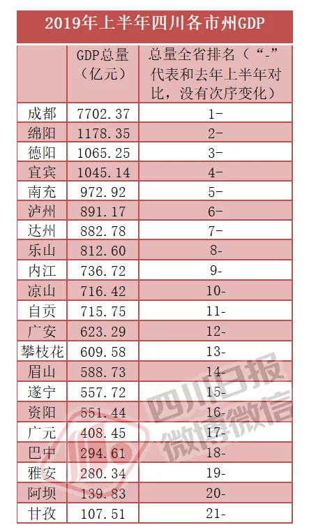 (原标题为《 四川21市州上半年GDP成绩单出炉,快看你的家乡排第几》)