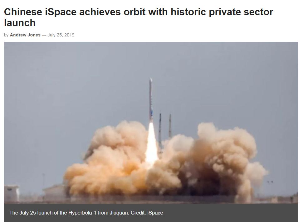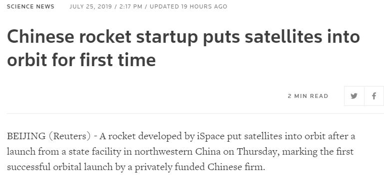 文章称,通过此次发射,“星际荣耀”成为了首个成功发射入轨火箭的民营公司,但中国其他民营航天企业也不甘人后,寻求取得突破。
