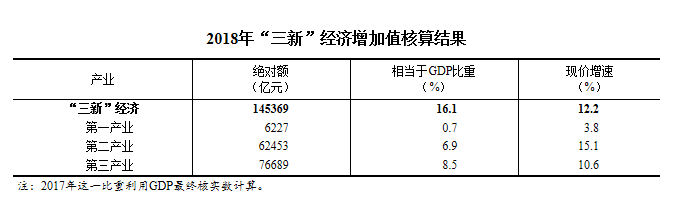 国家统计局28日发布的数据显示,经初步核算,2018年全国“三新”经济增加值相当于GDP的比重为16.1%,比上年提高0.3个百分点;按现价计算的增速为12.2%,比同期GDP现价增速高2.5个百分点。所谓“三新”经济,是新产业、新业态、新商业模式的简称。“三新”经济按下快进键,中国经济如何辞旧迎新?