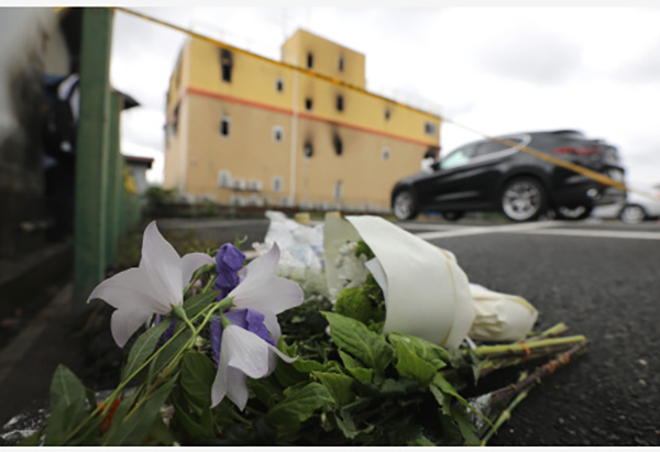 这是7月19日在日本京都纵火杀人案现场附近拍摄的悼念用的花束。新华社 资料图