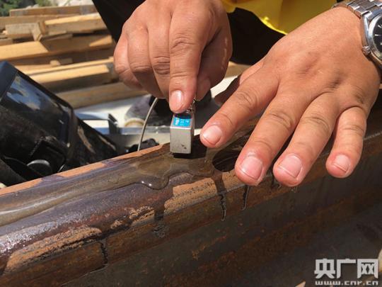 记者跟随董立清学习“探伤”(央广网记者 王晶 摄)