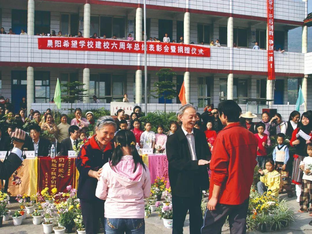 “不忘初心。我的初心就是:回报人民!一定要为人民做点什么!”陈老说。他永远忘不了在解放雅安时,没有营房,当地老百姓把负伤的他留在家中悉心照料,“这是救命之恩,我一定要回报人民!”1989年,退休不久的陈荣超第一次从新闻上看到“我要上学”的大眼睛女孩,陈荣超和老伴被深深触动,“这就是我们退休后要做的事——播种希望!”老两口一合计,把所有积蓄拿来办希望小学,帮助那些想要上学的孩子们。他们省吃俭用、倾其所有。2000年,陈荣超终于攒到了足够的钱完成了建校的梦想,在四川老区芦山县龙门乡捐建了第一所学校——“晨阳希望学校”,这既是夫妇二人姓氏的谐音,更象征着学校似清晨的朝阳托起明天的希望。