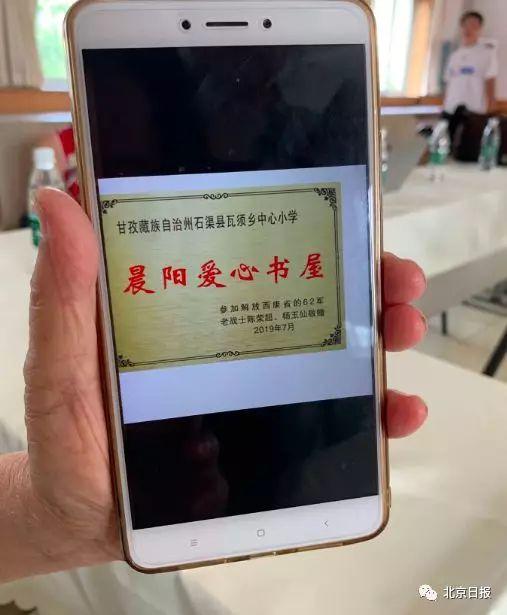 手机展示的爱心书屋铭牌,就是“三年计划”刚刚启动的第二年计划中的首所落地学校。