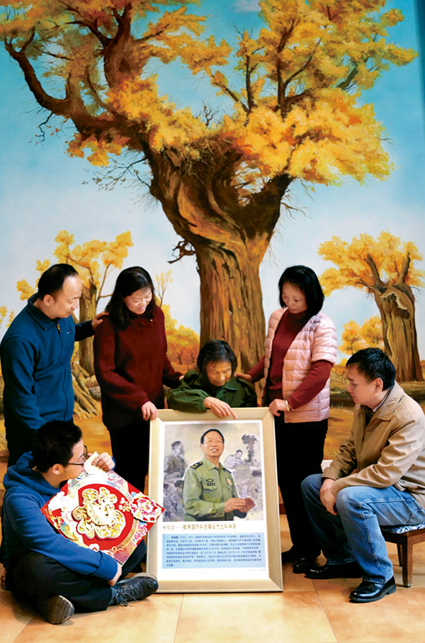 《林俊德的全家福》——2019年春节前夕,林俊德同志家人与林俊德英模挂像合影 。 李嘉伟/摄