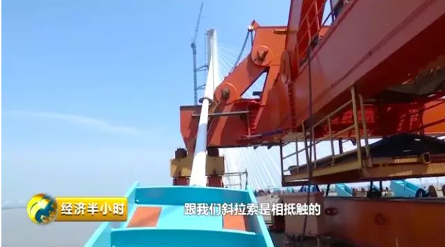 在船甲板上,《经济半小时》记者看到了大量的设备,黑颜色的耙臂用来在海底取泥,黄色吊车吊重40吨,前后跨度能达到55米,所用的钢丝比较特殊,自身就有一个内部的力,确保在吊重物时,不会旋转打结。