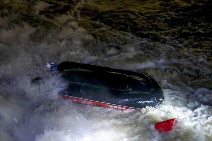 冲锋舟被水流冲翻