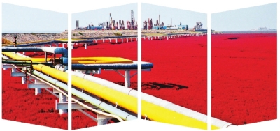 辽河油田开发建设近50年来,累计生产原油4.6亿多吨、天然气860多亿方,建成了全国最大的稠油、高凝油生产基地。图为红海滩中输油线。辽河油田供图