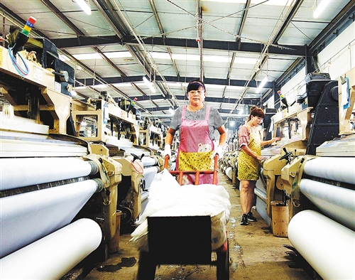 秦皇岛市青龙满族自治县朱杖子村村民在“扶贫车间”织布。该县以“扶贫车间”为载体,为贫困村培育特色产业,带动贫困户就业增收。 戴燕山摄