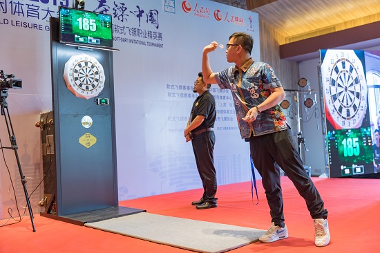 小步微迈,身体前倾,瞄准时使眼睛、镖、目标点对成一线,而后屏息凝神,将手中的飞镖精准掷出,飞镖划出一道弧线潇洒轻灵。比赛现场,职业选手每一次单轮大满贯,场馆内都爆发出热烈的掌声和欢呼声。