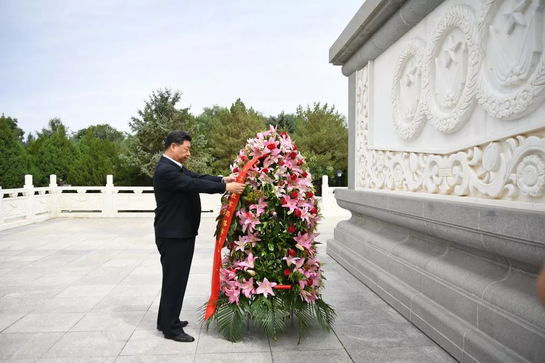 20日上午,习近平总书记来到张掖市高台县,瞻仰中国工农红军西路军纪念碑和阵亡烈士公墓,参观中国工农红军西路军纪念馆,向革命先烈敬献花篮。
