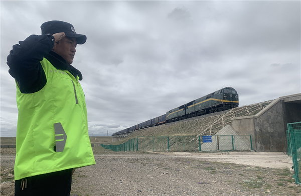 从拉萨出发,乘坐火车沿青藏铁路一路向北,透过车窗,每隔几百米就可以看到护路队员的身影。窗外,他们身姿挺拔笔直,伫立在铁路边,伴随着呼啸而过的列车抬起右臂,庄严地敬礼,给人以满满的安全感。