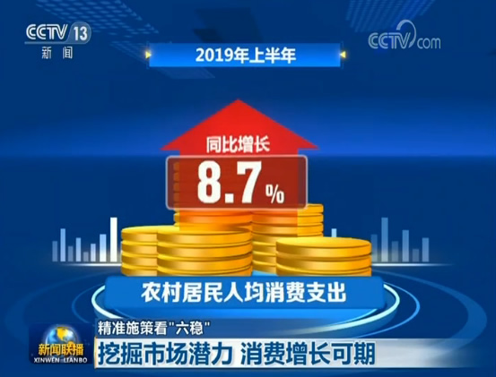 央视网消息(新闻联播):今年上半年,消费对经济增长的贡献率超过60%,是拉动经济增长的最大动力。随着中央各项促进消费政策措施的深入实施,我国居民,特别是农村居民形成强大消费能力,成为扩大内需,稳定增长预期的新亮点。