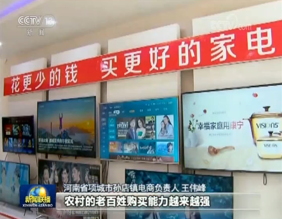 能这么快送货到家,是因为电商的连锁店就建在村里面。前不久河南出台22条促进消费的新政,其中重要一条就是,推动电商企业在村镇设立服务网点。河南把消费市场下沉到村镇,电子商务加速向农村渗透,以此来有效撬动5000多万农村人口的消费潜力。
