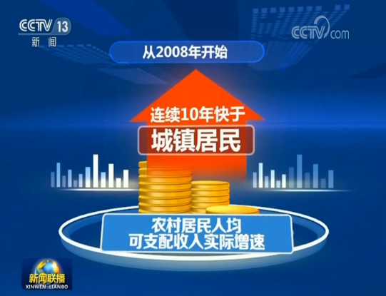 从2008年开始,农村居民人均可支配收入实际增速连续10年快于城镇居民。收入增加带来的是农民的购买能力和消费意愿进一步增强。