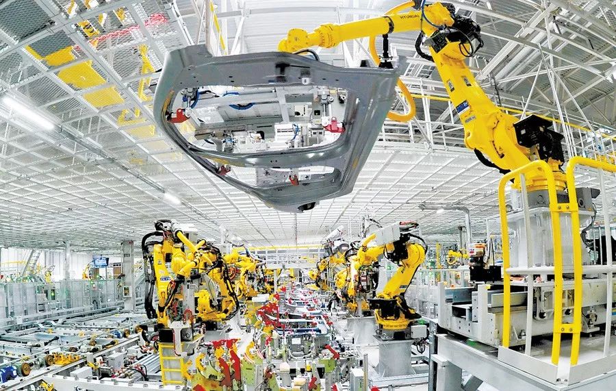 距离当年泊头火柴厂40公里处的河北沧州经济开发区,北京现代沧州工厂智能车间内,299台机器人挥舞着灵活的机械手臂搬运、焊接、码件,只需51秒就能组装下线一辆汽车。(姜永斌)