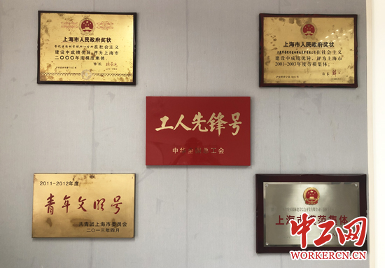 图为杨飞飞所在团队获得的荣誉。中工网记者 朱晶晶 摄