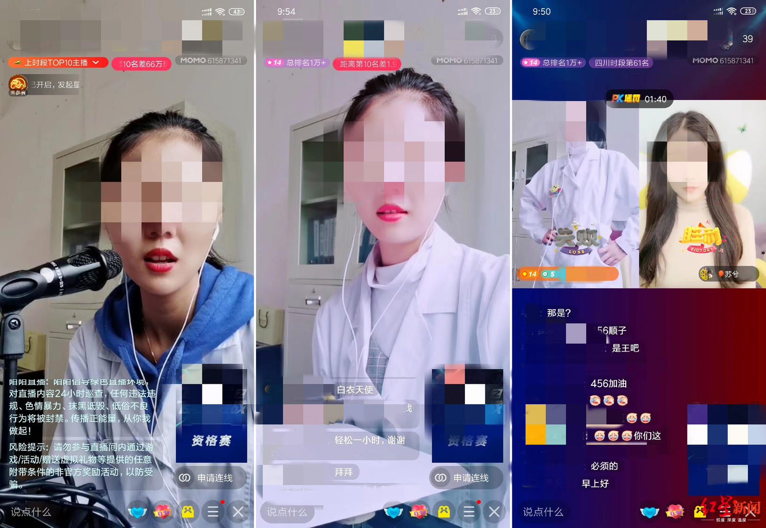 据网友向红星新闻记者爆料,该年轻女子自称是四川乐山人,在医院保健科上班,身穿白大褂开直播,而且都是在上班时间:早上8时到12时和下午14时30分至17时,影响白衣天使形象和社会风气,希望有关部门进行调查处理。