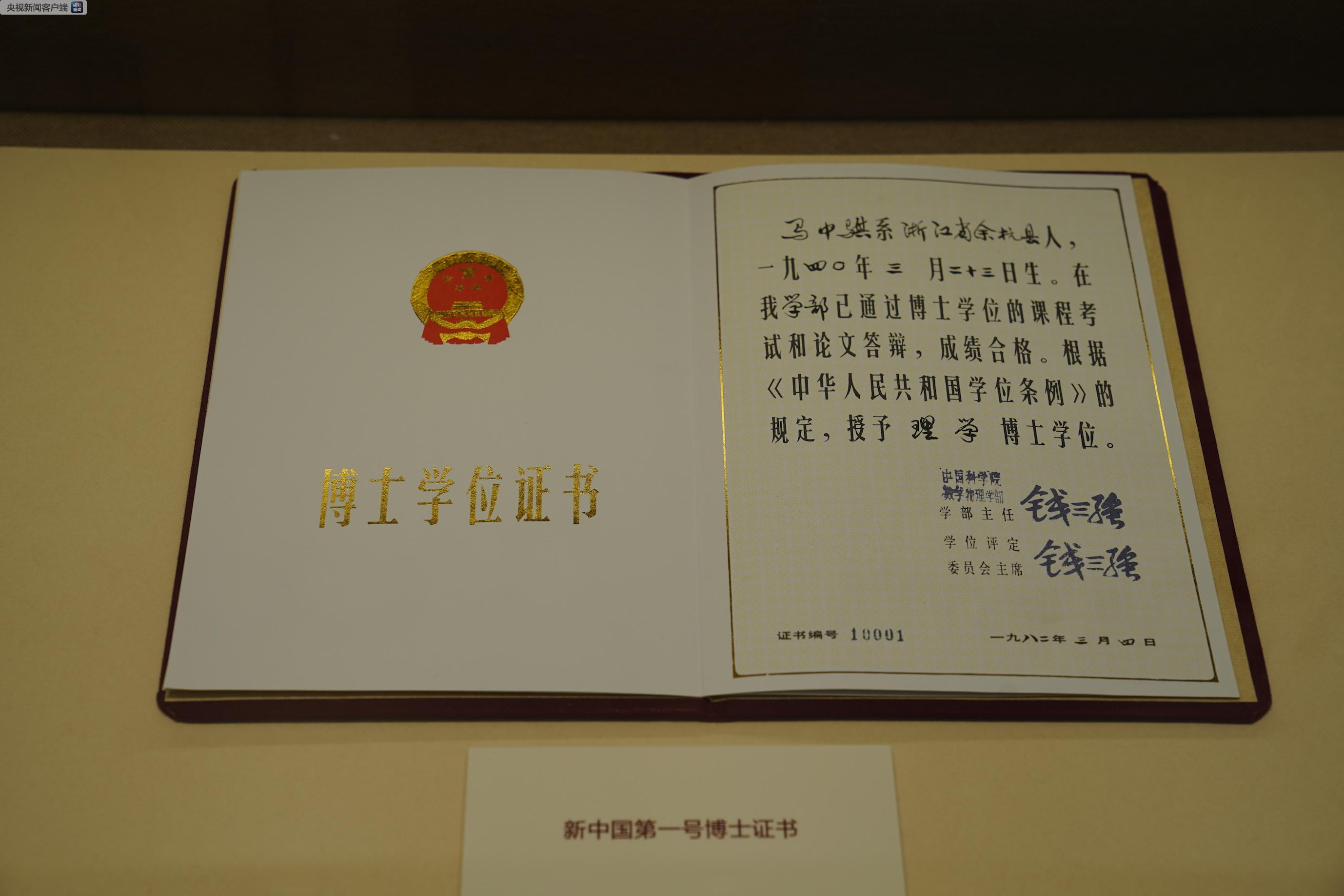 △1982年3月签发的新中国第一号博士证书。这个幸运儿是当年42岁的中科院理学博士马中骐。