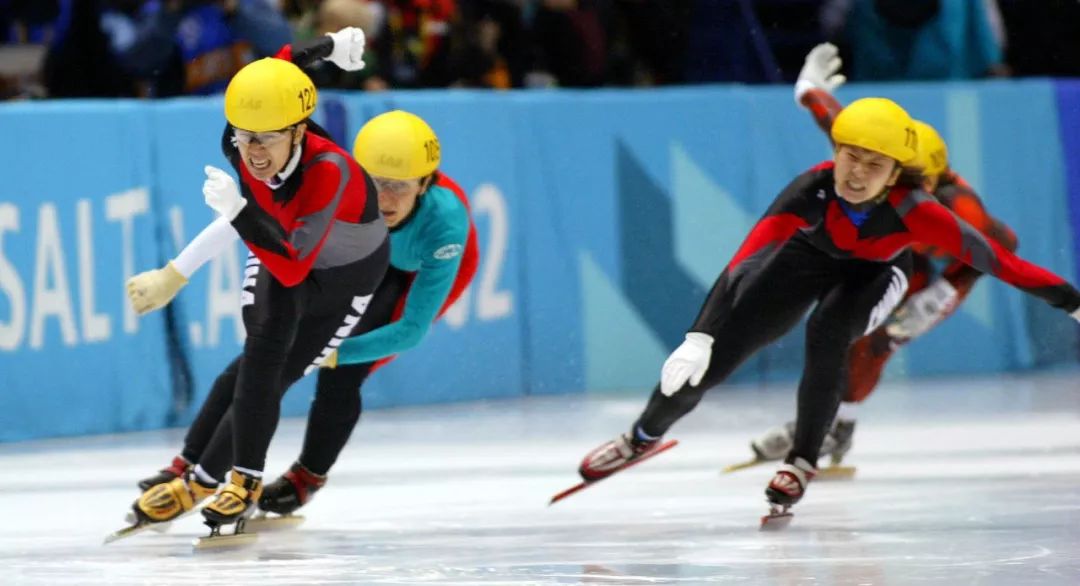 2002年2月6日,杨杨(左)在盐湖城奥运会女子短道速滑500米比赛中夺冠(新华社记者赵迎新摄)