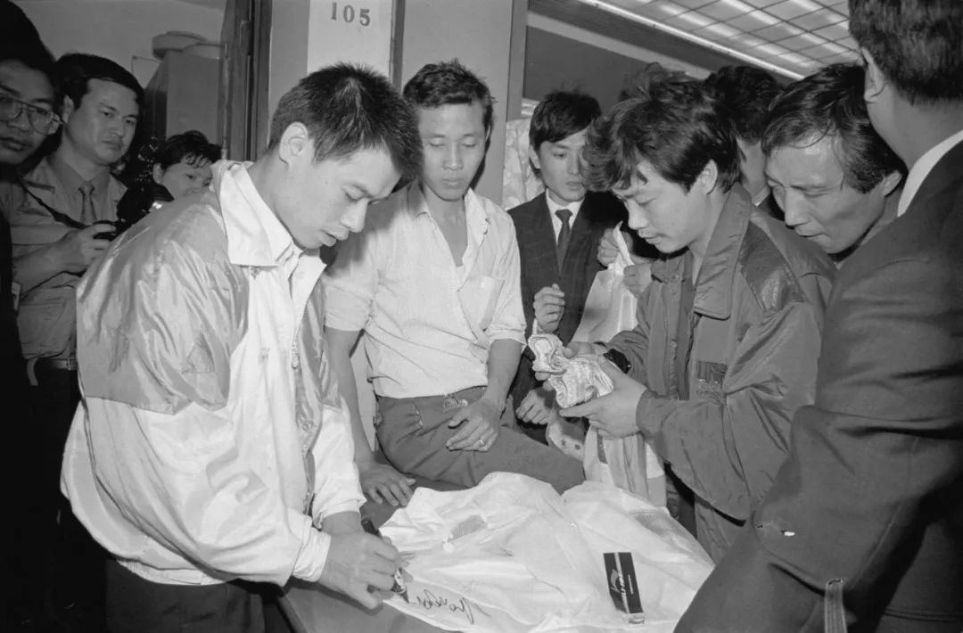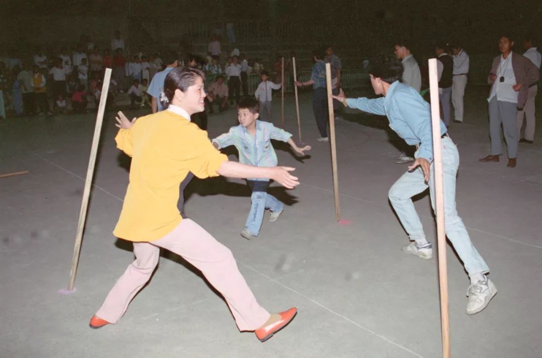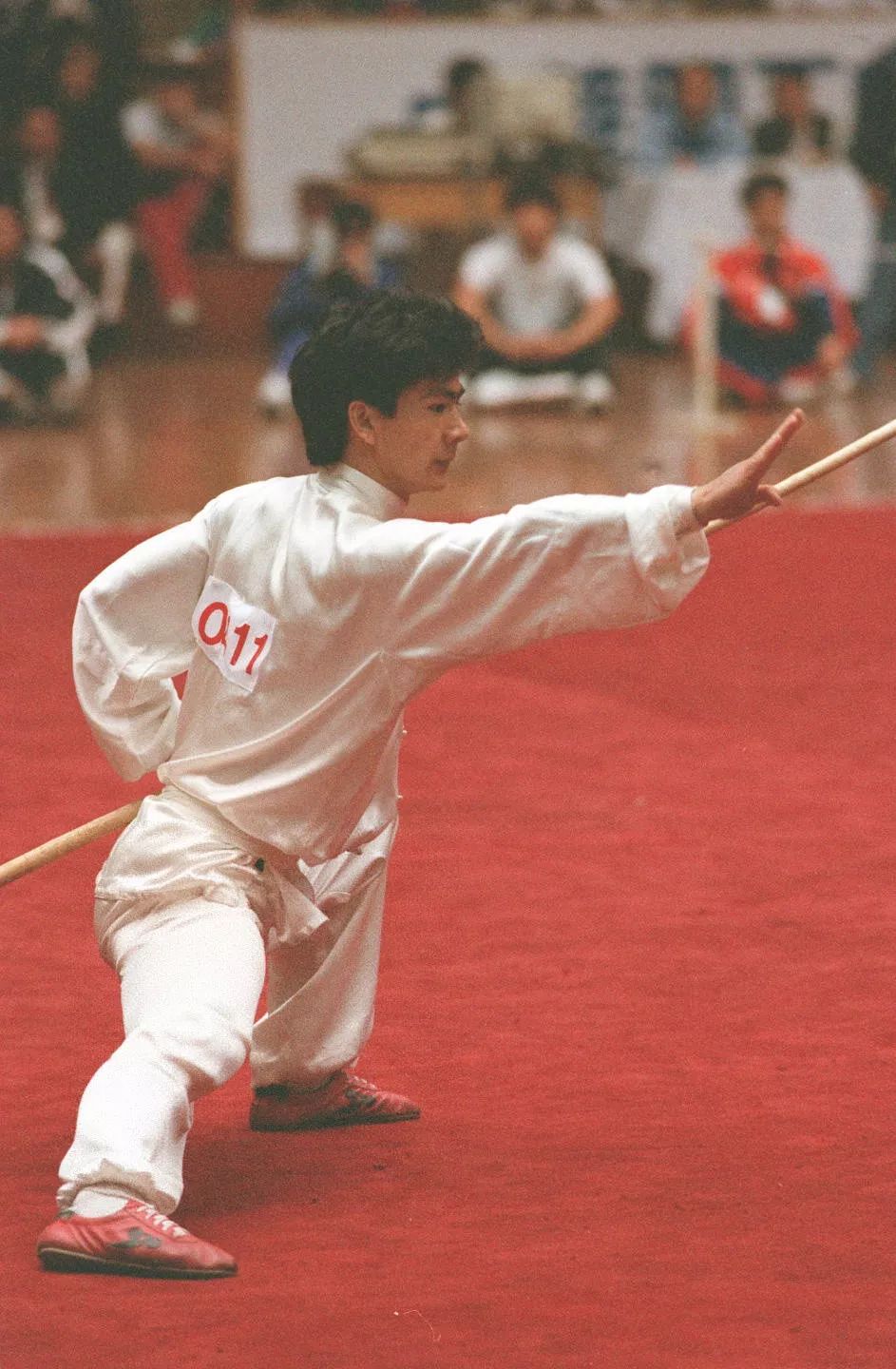 1991年第一届世界武术锦标赛,中国选手高焕波独得男子长拳、男子刀术、男子棍术和男子全能4枚金牌。(新华社记者程至善 摄)
