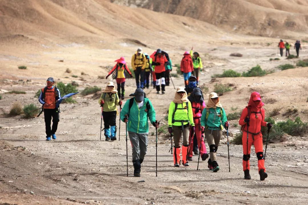 2016年5月8日,酒泉公益徒步活动中的爱好者。(新华社图)