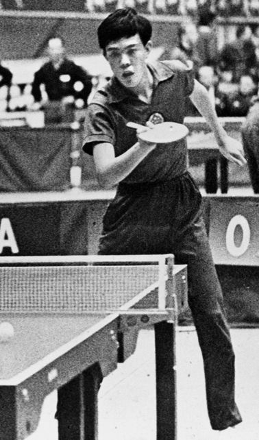 1959年3月,第25届世乒赛上的容国团。(新华社图)