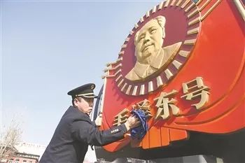 “毛泽东号”奔跑的速度越来越快,车头前的毛泽东像也悄然发生着变化。1978年制作的370公斤车徽,曾经牵动了北京市11个局及其下属单位的力量。如今,车徽换成了更轻的碳纤维材质,重量降到90公斤。