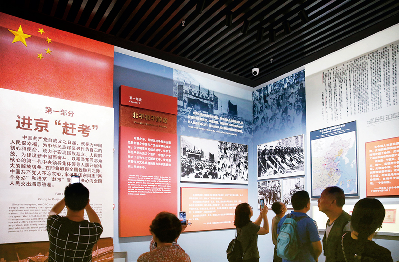2019年9月13日,北京香山革命纪念馆向公众开放。《为新中国奠基——中共中央在香山》主题展全景式生动呈现了中共中央在香山期间领导全国各族人民,完成民族独立和人民解放的历史使命、开启中国历史发展新纪元的光辉历程。图为9月15日展览现场。 人民图片 陈晓根/摄