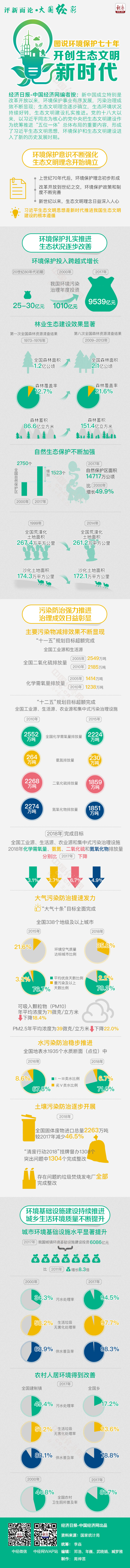 经济日报-中国经济网编者按:新中国成立特别是改革开放以来,全社会对环境保护和生态文明建设的认识不断深化,环境保护事业有序发展,污染治理成效不断显现;生态文明理念逐步确立,生态环境状况持续好转,生态文明建设扎实推进。党的十八大以来,以习近平同志为核心的党中央高度重视生态文明建设,把生态文明建设作为统筹推进“五位一体”总体布局的重要内容,形成了习近平生态文明思想,环境保护和生态文明建设进入了新的历史发展时期。