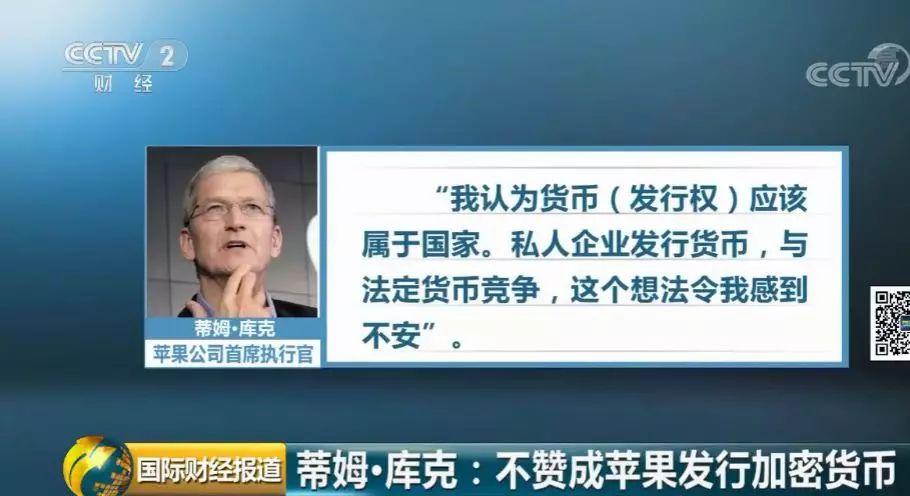 但现在,据《福布斯》5日报道,库克本周在接受法国媒体采访时称,不赞成苹果发行加密货币,并说私人企业不应该通过发行货币来牟取利益。