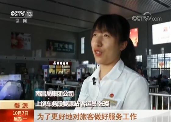南昌局集团公司上饶车务段婺源站客运员 张璨:我们车站的客流比平时增了51%,到达客流集中在1、2、3号,返程高峰集中在6、7号,为了更好地对旅客做好服务工作,我们车站组织熟悉周边景区情况的工作人员到站台和出站口,为旅客提供咨询服务,更好保障旅客出行。