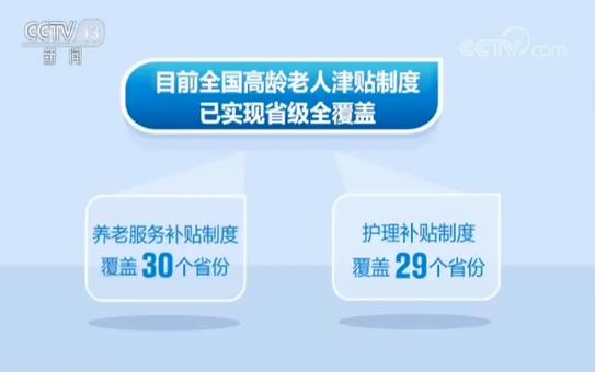 目前全国高龄老人津贴制度已实现省级全覆盖,养老服务补贴和护理补贴制度分别覆盖30个、29个省份。全国符合条件的近1500万困难老年人纳入了最低生活保障范围,近400万特困老年人已全部纳入政府供养范围。