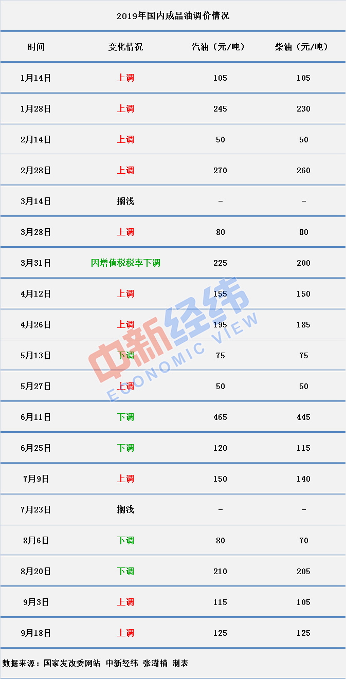 中新经纬客户端统计,今年以来,包括3月31日因增值税税率调整而进行的下调,国内成品油价已历经19轮调价,呈现“11升6降2搁浅”格局,汽、柴油价格分别累计上调365元/吨和370元/吨。
