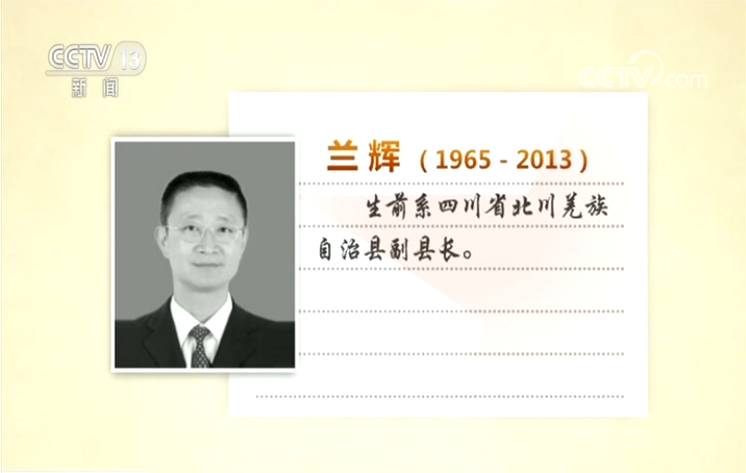 参加工作近30年来,他始终把党的事业和人民群众放在心中最高位置。“5·12”汶川特大地震发生后,他强忍失去3位亲人的悲痛,始终战斗在抢险救灾、灾后恢复重建一线。兰辉任副县长以来,坚持深入一线,平均每天行车200多公里,即使生病住院动手术也不丢下工作,生命最后一刻还奋战在交通建设和防汛现场。2013年5月他因公殉职,年仅48岁。兰辉荣获全国优秀共产党员、全国“人民满意的公务员”、全国五一劳动奖章等荣誉称号。